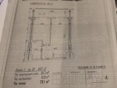 Ka siperfaqje 73.1m2 ne total apartamenti ndodhet ne katin e 3 banim.