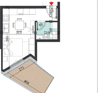 📏 Sipërfaqe totale: 43.7 m²