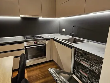 Apartament 2+1 me qera tek 5 Maji prane lokalit Blackstone , ndertim i vitit 2023, teresisht i mobiluar. Ambient gatimi i kompletuar (furre, pianure, frigorifer, lavastovilje etj)., 100 M2, kati 6, totali i kateve 9, 2 banjo, ashensor, sallon ndenje, ngrohje/ftohje me kondicioner ne çdo dhome, 2 dhoma gjumi, 1 ballkon.